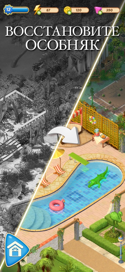 — РЕМОНТИРУЙТЕ и восстанавливайте новый дом Мэдди, расширяйте территорию особняка, украшайте и озеленяйте её!