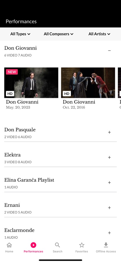 • более 100 представлений из отмеченной наградами серии передач для международной аудитории «Live in HD», в которых участвуют такие супер-звезды современной оперы как Роберто Аланья, Натали Дессэй, Джойс ди Донато, Пласидо Доминго, Ренэ Флеминг, Хуан Диего Флорез, Элина Гаранча, Йонас Кауфманн, Анна Нетребко, Дебора Войт и многие другие;