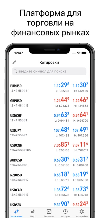 Мобильная торговая платформа позволяет узнавать котировки финансовых инструментов, анализировать рынок с помощью графиков и технических индикаторов, совершать сделки и просматривать историю торговых операций.
