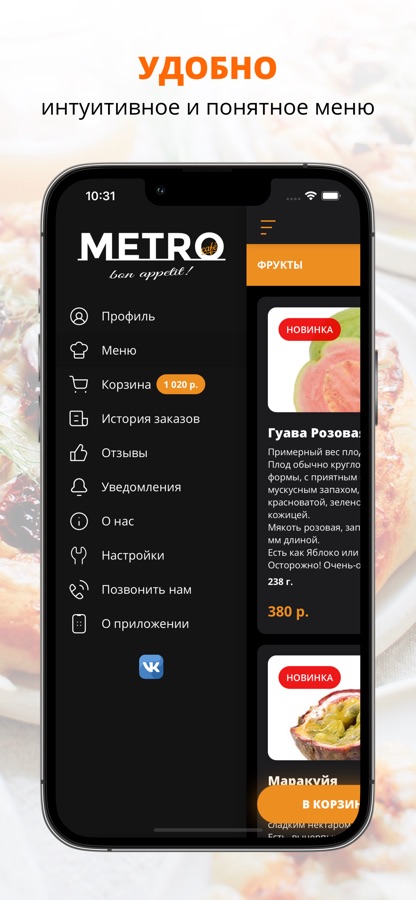 Приложение METROcafé — это удобный способ заказа еды домой или в офис! Мы готовим наши блюда из качественных свежих ингредиентов и доставляем еду быстро и бережно.