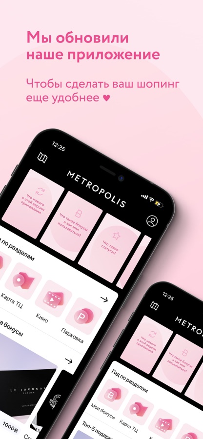 Мобильное приложение METROPOLIS создано для того, чтобы вы получали подарки и комплименты во время шопинга. Каждый раз совершая покупку в торговом центре МЕТРОПОЛИС и сканируя QR-код чека в приложении, вы копите бонусы, которые можно обменять на подарок или скидку.
