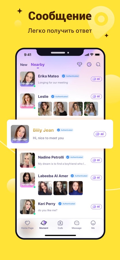 MeYo строго ограничивает любых фейковых пользователей или пользователей-роботов, требуя двухфакторной (машинной + искусственной) аутентификации всех новых пользователей, прежде чем они смогут продолжить общение. Более 90% пользователей прошли аутентификацию личности благодаря нашей приверженности и приверженности правдивой социальной платформе.