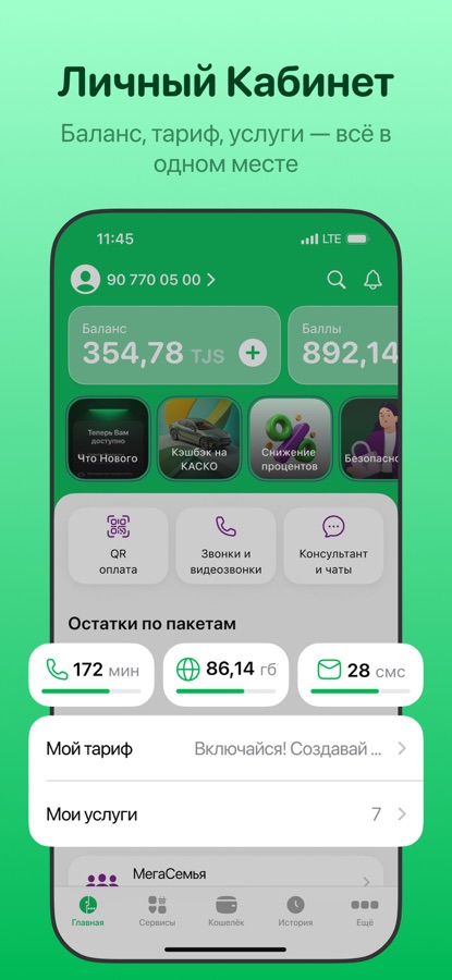 «МегаФон Таджикистан» (ЗАО «ТТ мобайл») – первый оператор новых цифровых возможностей. Предоставляет услуги сотовой связи стандартов GSM 900/1800 3G-UMTS, 3,5G HSDPA, 4G/ LTE и 5G.