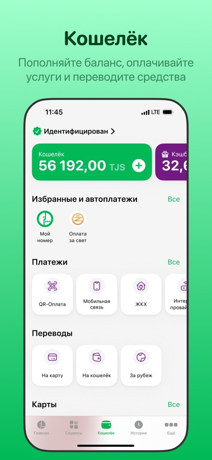 • Оплата услуг с карты «Корти Милли»: мобильная связь, интернет, телефон, ЖКХ и другое;