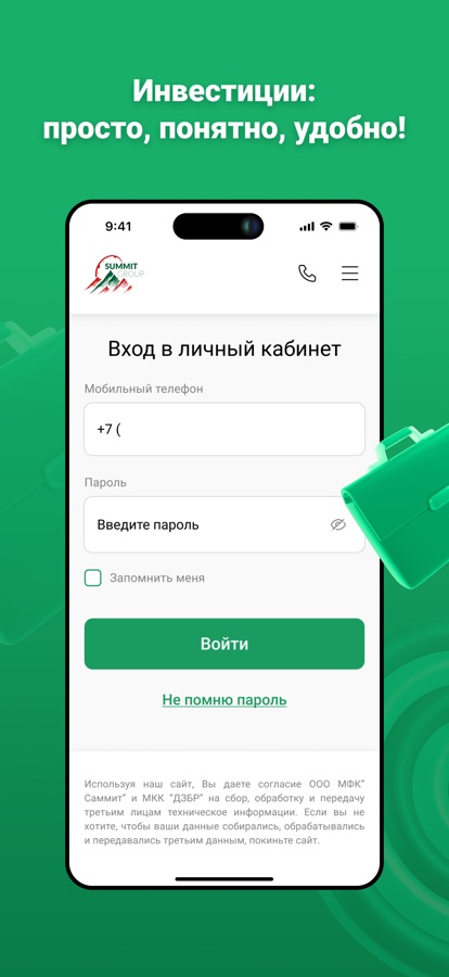 Мобильное приложение обеспечивает безопасную авторизацию в личный кабинет для инвестора, что позволяет вам управлять своими инвестициями прямо в телефоне.