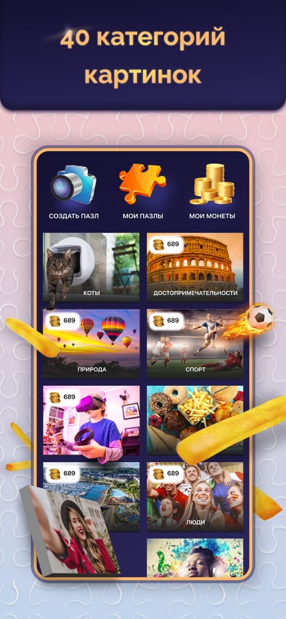 В огромной библиотеке пазлов, каждый сможет выбрать категорию на свой вкус — пазлы с животными, красивыми пейзажами или создайте свою уникальную головоломку из фотографии!
