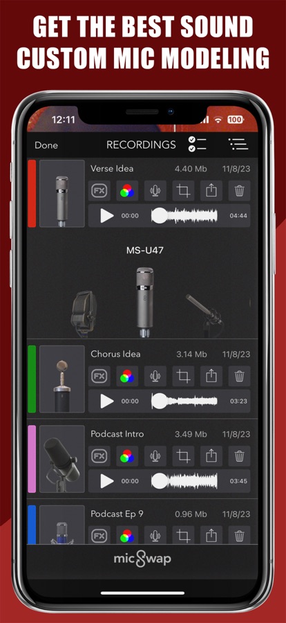 MicSwap — это интуитивно понятный инструмент, имитирующий настоящую студийную среду. Это микрофонный шкафчик и студия звукозаписи в вашем кармане. Запишите и отфильтруйте новый или уже существующий звук. Серьезные звукорежиссеры, музыканты, любители записи, подкастеры и т.д ..