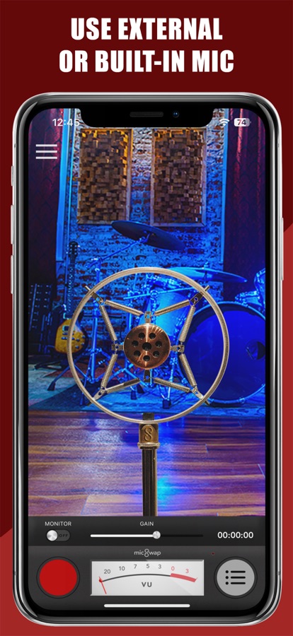 Используйте автономный, подпишитесь или приобретите MicSwap Pro для использования с внешним микрофоном или интерфейсом. Вы также можете использовать MicSwap Pro в тандеме с другими аудио приложениями. (Audiobus, AU & IAA совместимый)