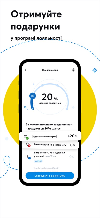• Подарунки та промокоди: Беріть участь у програмі лояльності, вигравайте подарунки та отримуйте знижки від партнерів Kyivstar.