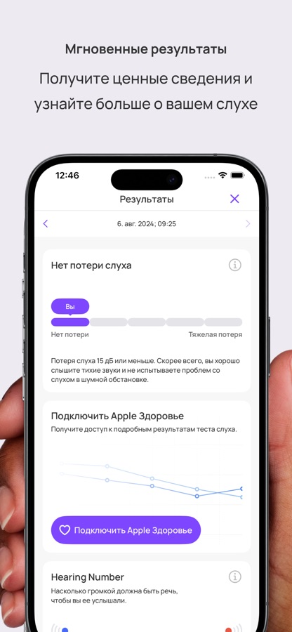 Проверьте слух за 5 минут с помощью теста слуха №1 в App Store! Четкие результаты, синхронизация с Apple Здоровье. Подходит для наушников Apple.