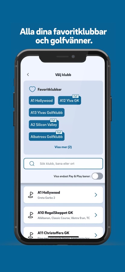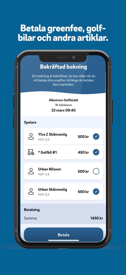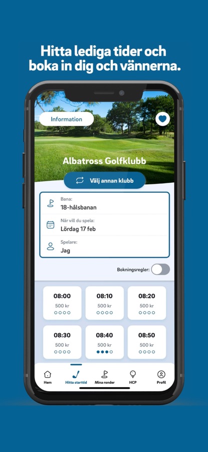 • Sök, boka och betala* starttider på svenska golfklubbar