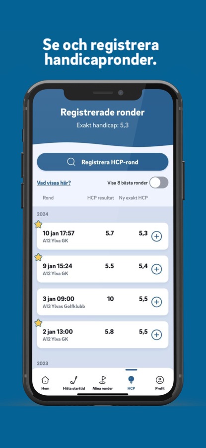 Om golfklubben har valt att aktivera denna funktion i appen.