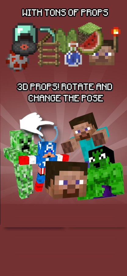Using thia appyou can so easy put original MineCraft elements on your photo, resize them and build a real cool MineCraft Scene as you like it to be build.