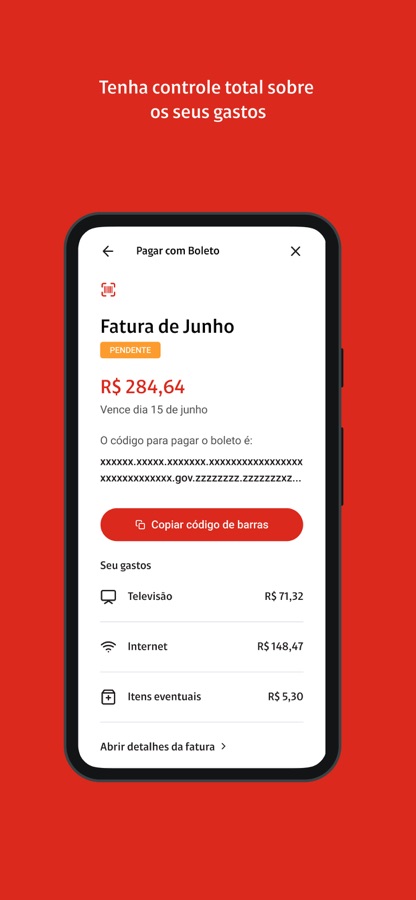 — Acesse a fatura completa de todos os produtos móveis e residenciais.
