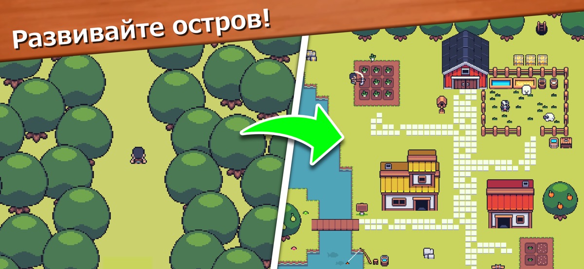 Постройте ферму на необитаемом острове! Уютный фермерский симулятор в пиксель-арте.