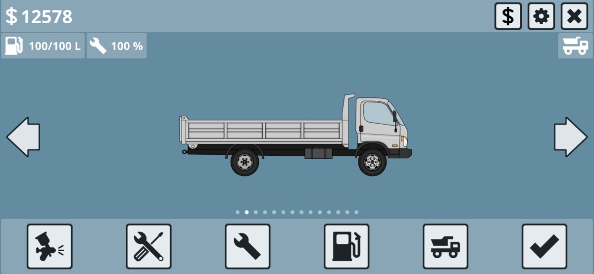 В игре доступно несколько автомобилей с различными характеристиками и грузоподъемностью. Для автомобилей доступно несколько видов оборудования: самосвал, бортовая платформа, цистерна и седельно-сцепное устройство. Также, можно дополнительно присоединить прицеп.