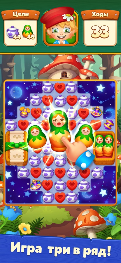 Тебе предстоит решать заковыристые головоломки, соединяя одинаковые элементы и создавая комбинации 3 в ряд.