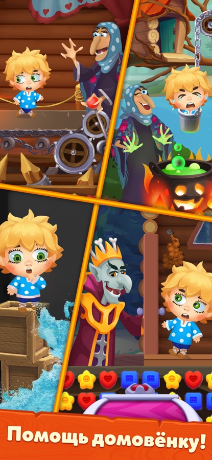 «Мир домовят» — это игра для всей семьи! Добрые сказки, знакомые с детства, красочная графика и затейливые уровни не дадут заскучать!