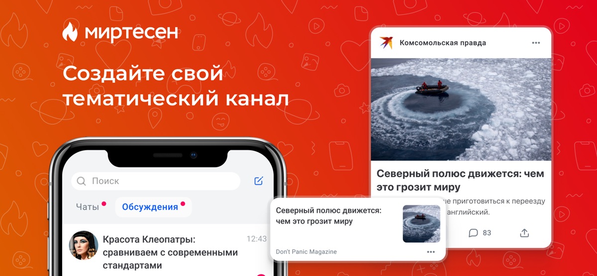 МирТесен — российская рекомендательная социальная сеть и сообщество авторов тематических каналов. Месячная аудитория проекта составляет более 12 млн посетителей. Материалы в МирТесен подбираются индивидуально для каждого человека.