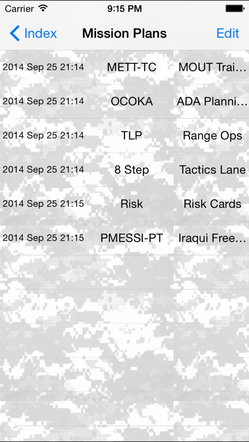Finally (and best of all) we have a mission analysis tool set for you to plan your mission using our premade templates. Save your data and email it to yourself or any of your troops that need to know. Your mission plans are saved on your device for reference at any time.