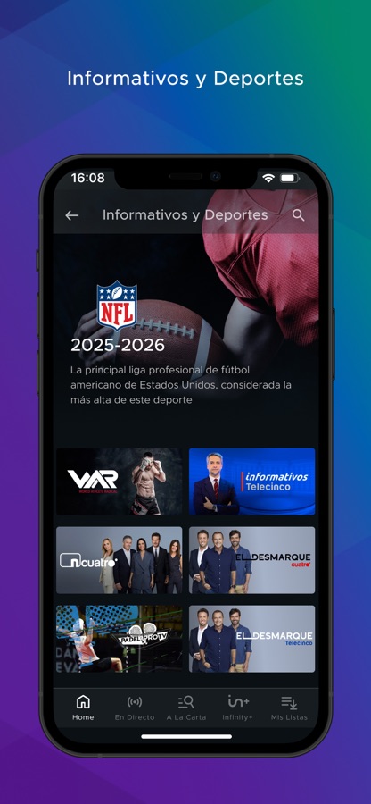 Скачайте приложение Mediaset Infinity España для iOS бесплатно - последняя версия (7.0.19) уже доступна для установки на ваш iPhone или iPad.