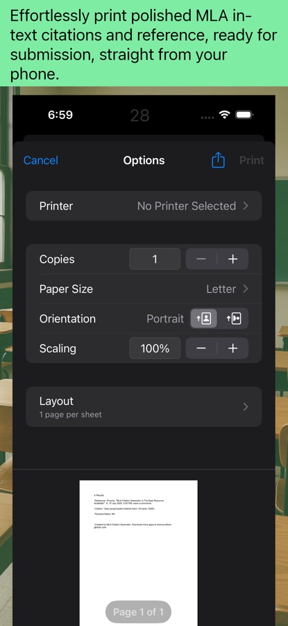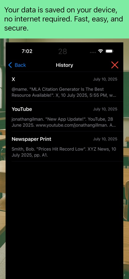 — Your citations are stored on your device, ready for copy-pasting or printing.
