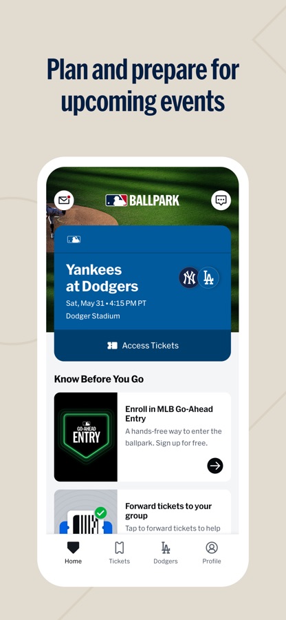 • Access and manage your tickets (MLB account required; select clubs)