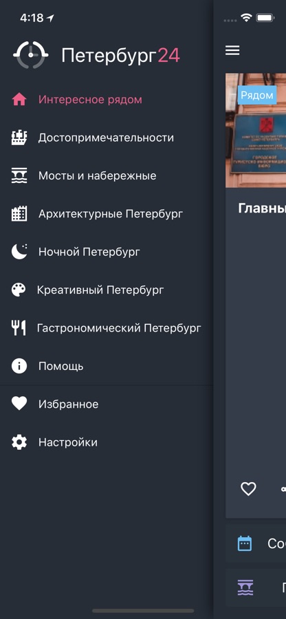 «Петербург 24» — мобильный авторский гид по историческому центру Санкт-Петербурга и туристическим пригородам. Приложение объединило путеводитель по городу и Афишу событий.