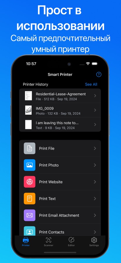 Air Smart Printer — это универсальное решение для всех ваших задач печати. Он позволяет вам печатать с вашего iPhone или iPad на любом HР, Еpson, Brother, Canon, Dell, Konica, Samsung или любом другом беспроводном принтере. Попрощайтесь с хлопотами по переносу файлов на ваш компьютер, а затем на ваш принтер. С нашим приложением вы можете легко печатать документы, фотографии, сканы, веб-сайты и даже электронные письма прямо с вашего мобильного устройства.