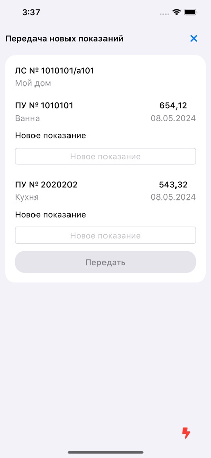 — просмотреть установленные приборы учёта и историю показаний