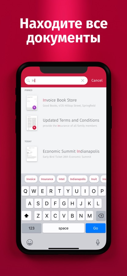 — Виджет главного экрана: виджет ярлыков обеспечивает мгновенный доступ к сканированию, поиску или просмотру последних документов.
