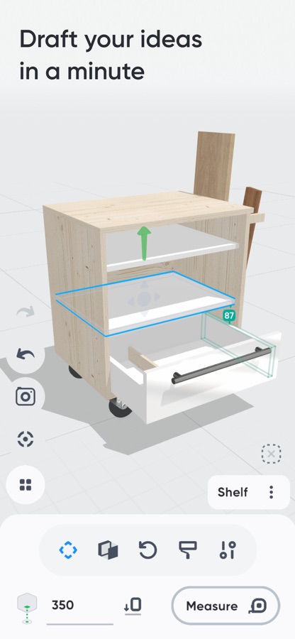 Лёгкое для использования трёхмерное моделирование для создания чертежей своей мебели и проектов «сделай сам». Визуализируйте свои 3D-творения в дополненной реальности