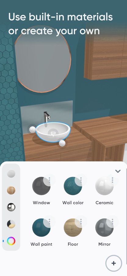 Выберите из нашей библиотеки материалы, которые вы хотите применить в своей трёхмерной мебели (краска, сорт дерева, металл, стекло). Или создайте свой собственный материал с помощью простого редактора.