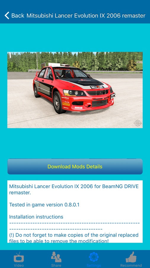 This app contains Mods of 【BeamNG Drive】, and all the mods can be downloaded from our server without further charge or periodic subscription. With the mods screenshots and descriptions, you will be able to find out whether the time and money needed is worth to backup the game, download and install the mods.