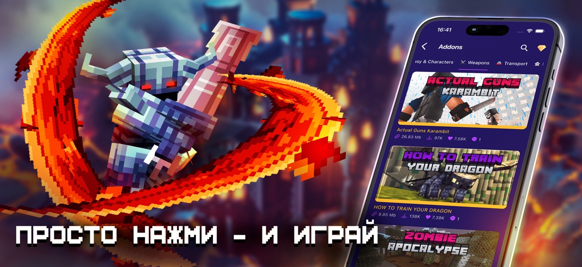 Погружайтесь в новые приключения с драконами, монстрами, оружием, машинами, мебелью и многим другим! Установка одним нажатием прямо в Minecraft PE.