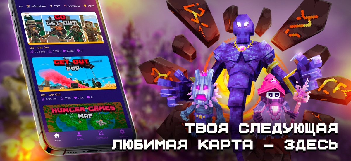 Загружайте уникальный контент мгновенно, всё собрано в одном удобном месте. Удивляйте друзей эпическими картами, стильными скинами, яркими текстурами и потрясающими творениями!