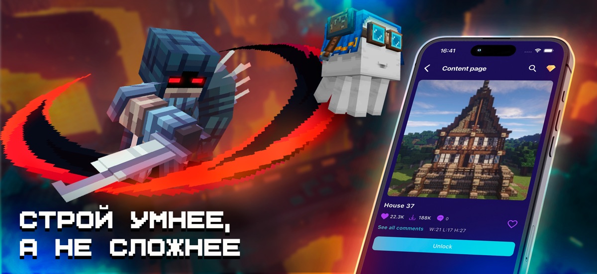 Загружайте современные особняки, средневековые замки, небоскребы и чудеса на основе редстоуна. Покажите свои творения друзьям и сделайте мир уникальным!