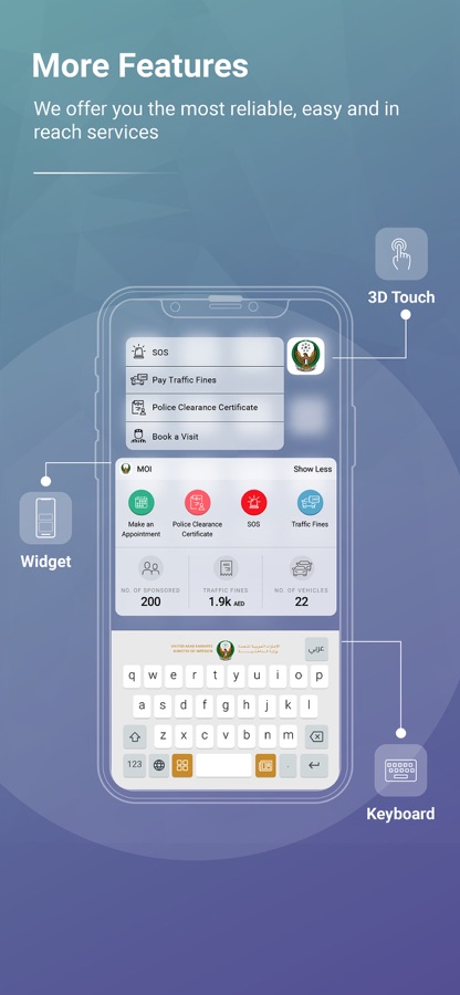 In addition to the smart services, the application provides many smart features such as the nearest service center location as well as a ticketing service to book your appointments before heading to service centers. It also provides news and information about the Ministry of Interior of United Arab Emirates.