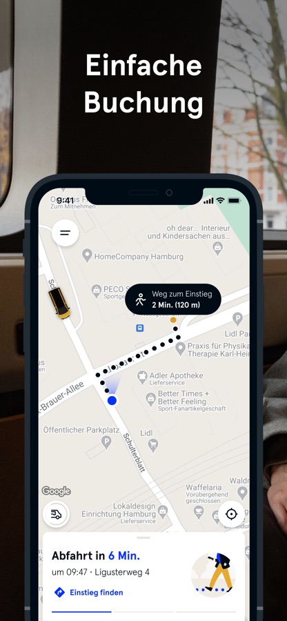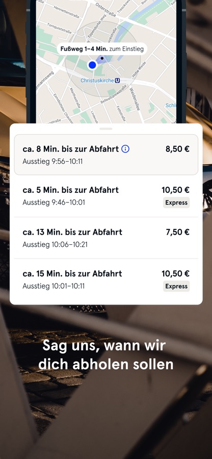 In Hamburg bringt dich dein MOIA entspannt ans Ziel: zum HBF, Zug oder den wichtigsten Punkten der Stadt. Lass dein Auto stehen, buch deine Fahrt bequem per App und zahl mit Kreditkarte, PayPal oder Apple Pay. Wer sonst mit Rad oder Scooter unterwegs ist, findet im vollelektrischen MOIA Shuttle die perfekte emissionsfreie Alternative. Ohne Umsteigen beim ÖPNV, nervige Parkplatzsuche oder unnötige Wege. Dafür mit komfortablen Privacy-Sitzen, WLAN und USB-Ports zum Laden deiner Geräte. Deine Fahrt teilst du dir mit bis zu fünf Mitfahrern und bist deswegen besonders günstig unterwegs. Natürlich sagt dir die App vorher, was es kostet, wo du abgeholt wirst und wann du voraussichtlich ankommst. So ersparst du dir Stress – und allen anderen volle Straßen.