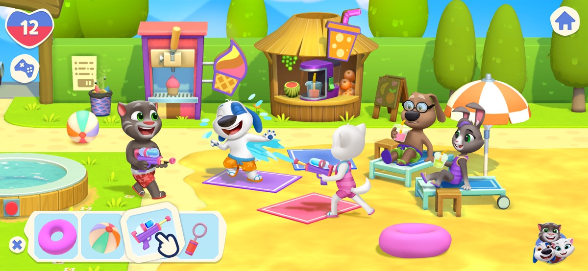 — Заботьтесь о друзьях: кормите, убирайте, играйте и общайтесь с Говорящим Томом и другими друзьями, чтобы они были здоровые и счастливые.