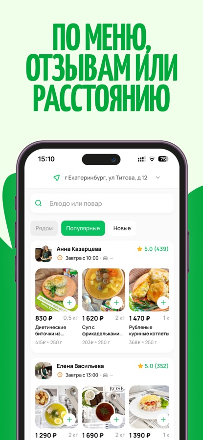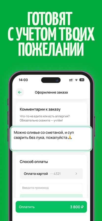 В приложении можно выбрать повара и оформить заказ с учётом своих пожеланий, указав их в чате или в комментариях