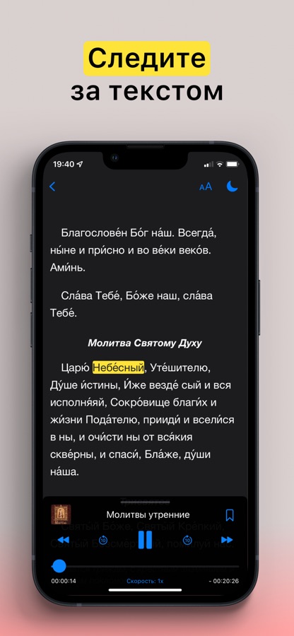 ・Подсветка слов позволяет следить за текстом во время прослушивания, помогает лучше понимать и запоминать молитвы;