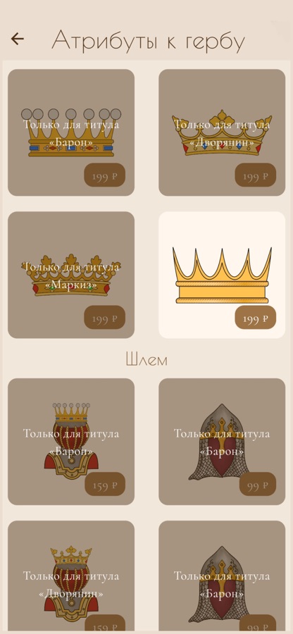 — Возможность управлять своим гербом и добавлять к нему корону, девиз и прочие атрибуты бренда;