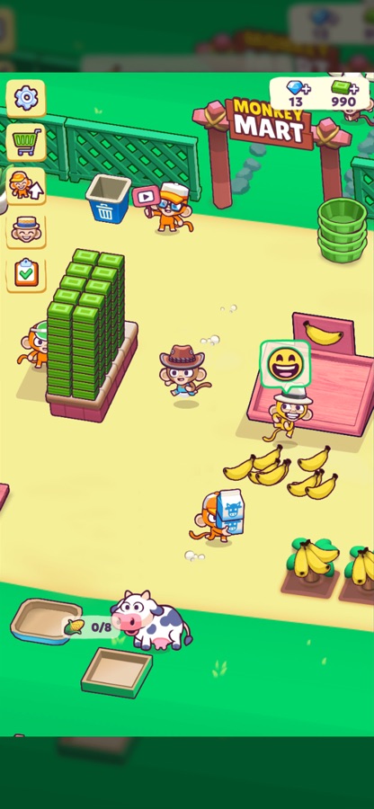 Welcome to Monkey Mart, the ultimate idle/management game! Take control of a lovable monkey and become the master of your own supermarket. Plant delicious fruits, harvest fresh produce, and keep your stands stocked with a variety of tasty treats. From bananas to corn, eggs to peanuts, and even coffee beans and chocolate, there’s something for everyone at Monkey Mart. Join in on the fun and start building your supermarket empire today!