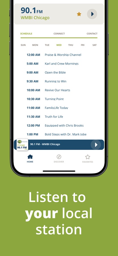 • SEE WHAT’S SCHEDULED ON AIR FROM THE APP: access what programing is up next on your favorite station by checking out our “Schedule” calendar in the Moody Radio app