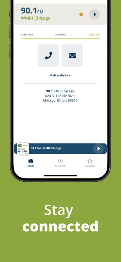 • GET CONNECTED WITH YOUR FAVORITE PROGRAMS: quickly access the community calendar, email, phone number, mail address, Facebook page, and X (formerly Twitter) page, of your favorite station or program through the “Connect” and “Contact” features within the Moody Radio app