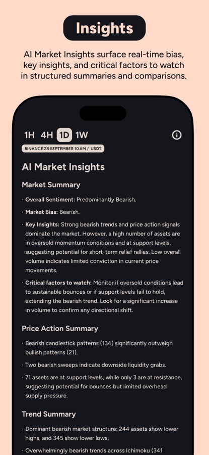 Insights — AI Market Insights with real-time bias, key insights, and critical factors to watch in structured, actionable summaries.