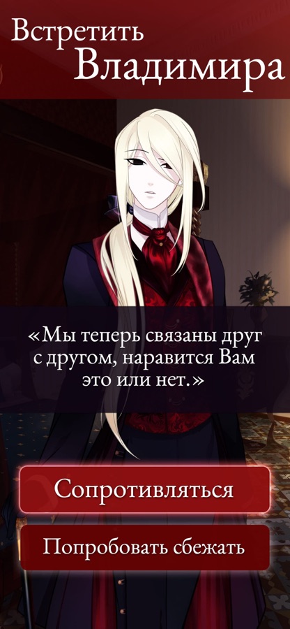 Ты можешь проходить истории с выбором (choice game) из серии Moonlight Lovers бесплатно и в любом порядке. История любви с каждым персонажем индивидуальна и предлагает новое приключение и новые загадки… В этой игре с выбором (choice game) отношения могут закончится тремя разными способами! Раскрой все тайны замка и обитающих в нем вампиров!
