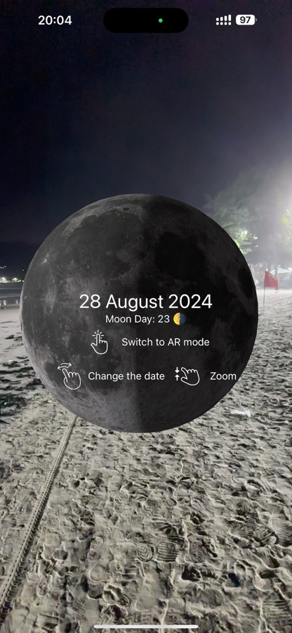 Moonlight покажет Вам текущую фазу луны с красивой анимацией и отличным качеством. Режим дополненной реальности (AR), в котором Вы можете наблюдать всю лунную поверхность в разрешении 8K и выбирать точную дату с реальной фазой.