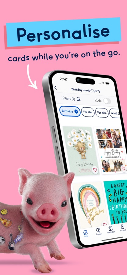 The Moonpig app is so much more than a birthday card app; whether you’re playing with our clever AR tool, personalising the perfect gift or setting birthday reminders, we’ve made it simple. Order by 9:30pm and we’ll dispatch your order the very same day.